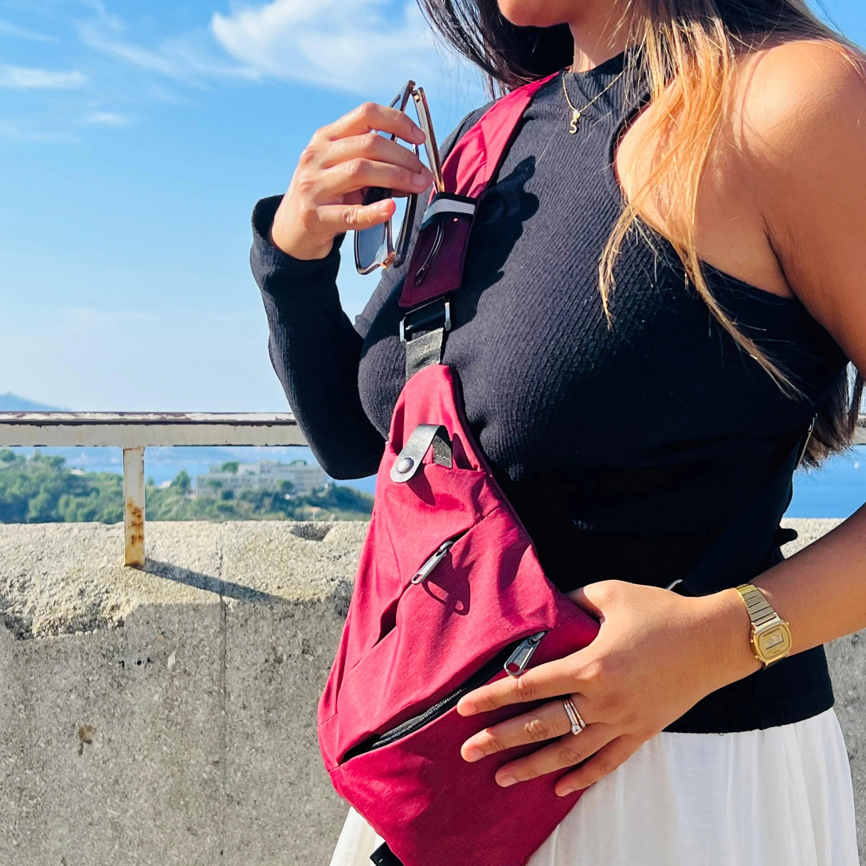 Gardez les voleurs à distance et vos affaires en sécurité. Son design plat épouse votre corps, empêchant toute main indiscrète d’y accéder. Discret, sûr et sans stress.